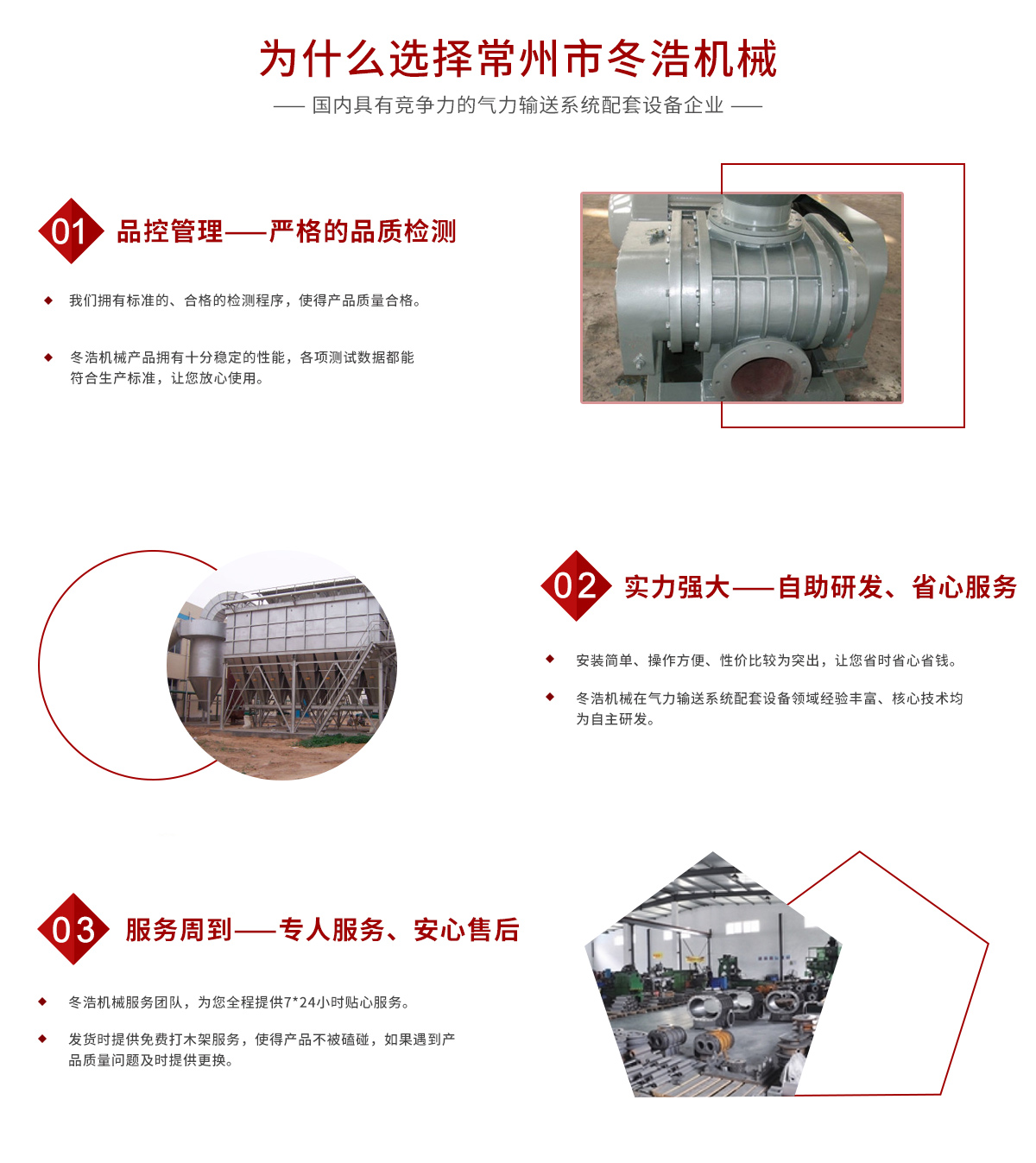 常州市冬浩機(jī)械有限公司占地面積5000平方米,擁有一支專業(yè)的科技研發(fā)團(tuán)隊(duì)和配備專業(yè)的生產(chǎn)設(shè)備。專業(yè)致力于氣力輸送系統(tǒng)配套設(shè)備的研發(fā)、生產(chǎn)及銷(xiāo)售。產(chǎn)品在實(shí)際應(yīng)用中不斷創(chuàng)新、不斷升級(jí),現(xiàn)已對(duì)接實(shí)現(xiàn)自動(dòng)化、智能化、人性化。實(shí)踐證明公司生產(chǎn)的吸糧機(jī)系列、高溫羅茨風(fēng)機(jī)系列、關(guān)風(fēng)機(jī)系列、氣力輸送設(shè)備系列、特殊工況訂制系列的產(chǎn)品被廣泛運(yùn)用于石油化工、油脂、化工干燥、除塵、冶金、環(huán)保、電子、煤炭、建筑、電力機(jī)械、糧食、飼料等行業(yè)。為解決輸送、搬運(yùn)等環(huán)節(jié)中節(jié)約大量的人力、財(cái)力;從而提高了生產(chǎn)效率。